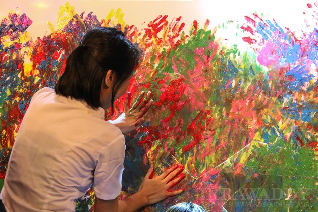 A ceremony of donation cash to family members of political prisoners at NLD party's headquarters.