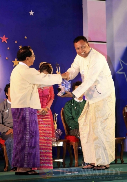 Winner of Myanmar's Academy Award for 2009 pose with their awards at the annual Academy Awards organized by Myanmar Motion Picture Enterprise at the open-air theater of city hall in Nay Pyi Daw, Burma.
