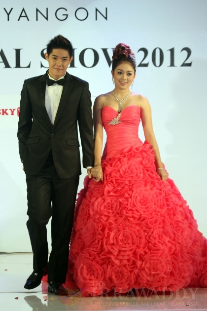 Myanmar models present weddingdress during a wedding birdal show at Park Royal hotel on Sunday, Aug.19, 2012, in Yangon, Myanmar.