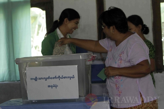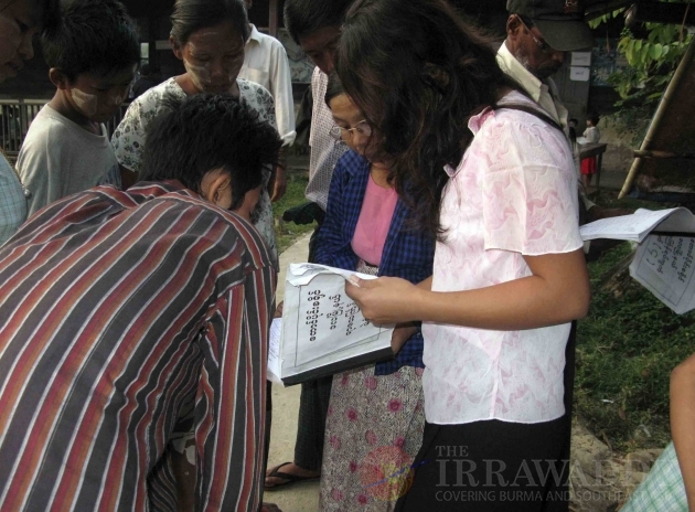 Voters search their names on a list to vote a local polling station in Rangoon, Burma.
