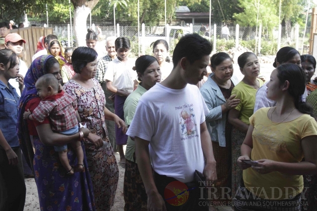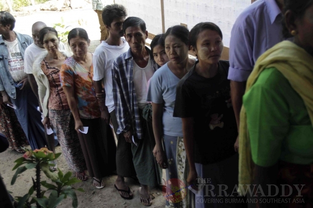 Voters wait to register before to cast their ballot at the polling station in the first election in Bago Region.