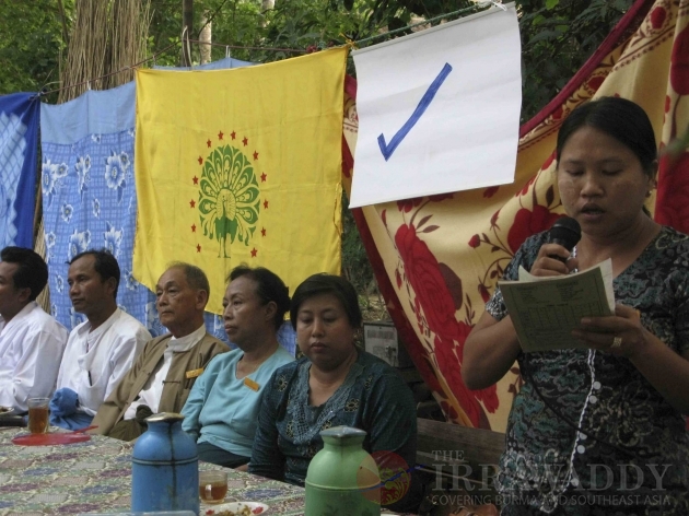 Chairman of Democratic Party (Myanmar), U Thu Wai runs political campaign at Gyobingauk in western Bago Region, Burma.
