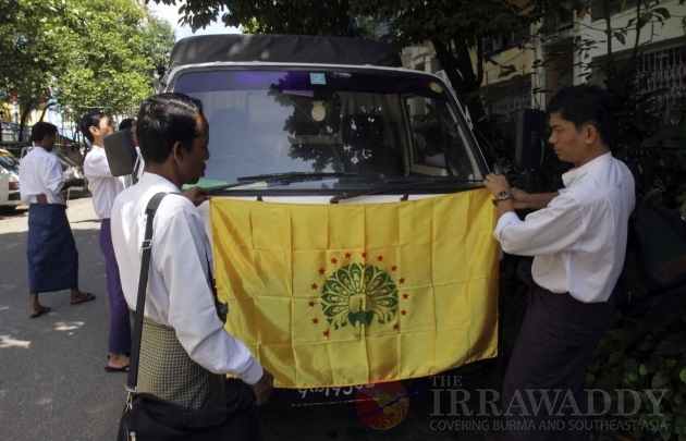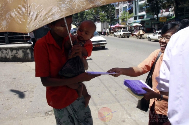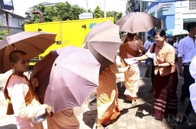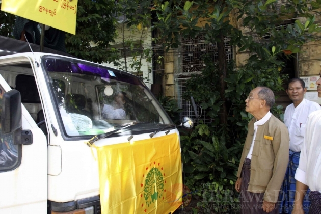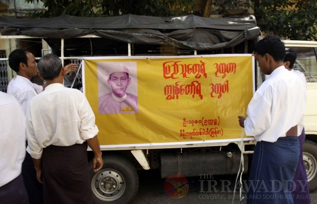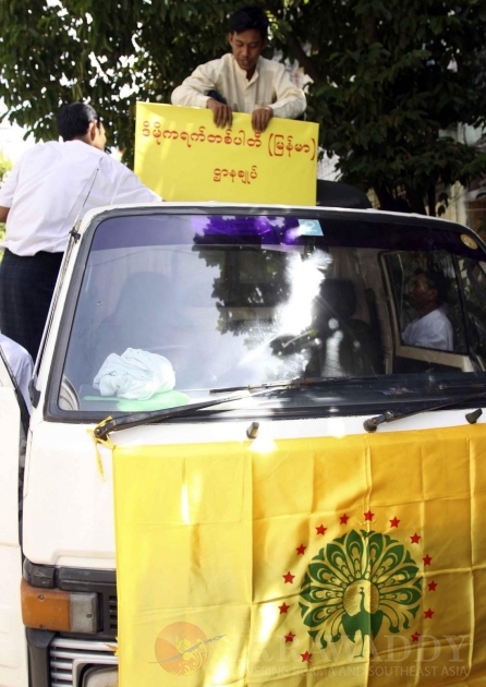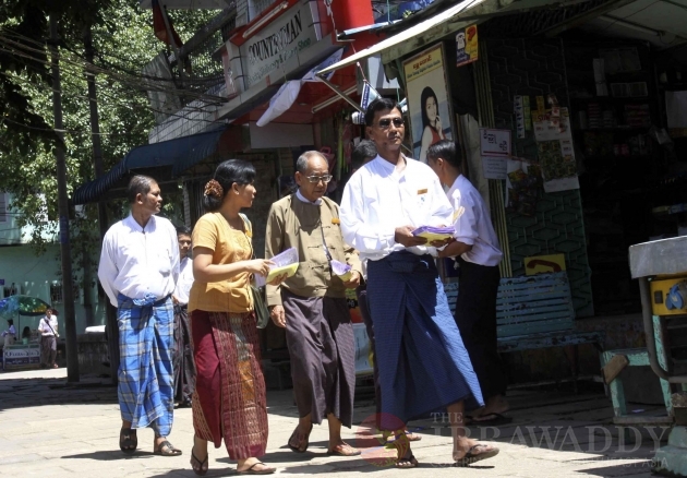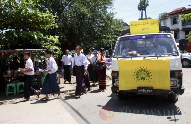 Chairman of Democratic Party (Myanmar) U Thu Wai run campaign at the Mingalar Taungnyunt Township in Rangoon for coming election.