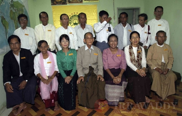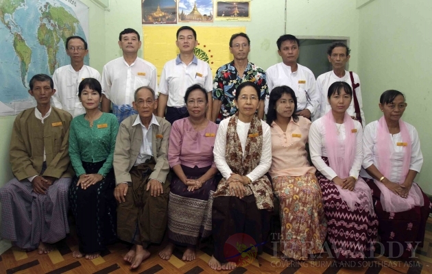 Democratic Party (Myanmar) memberships took a group picture at their office.