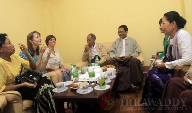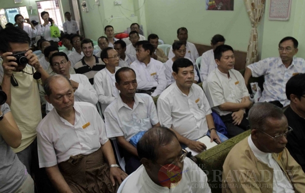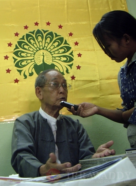 Thu Wai, chairman of the Democratic Party (Myanmar), talks to a journalist during an opening of the Party's Headquarters in Rangoon, Burma. Out of 39 parties that submitted the applications for registration as political parties, 36 have been permitted to