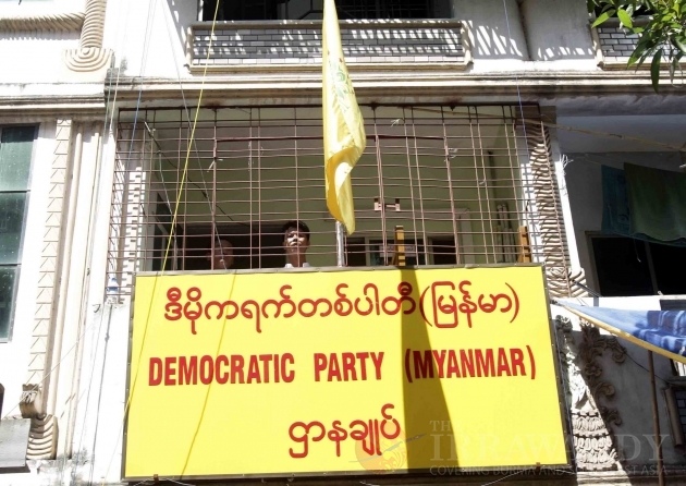 Democratic Party (Myanmar) memberships took a group picture at their office.