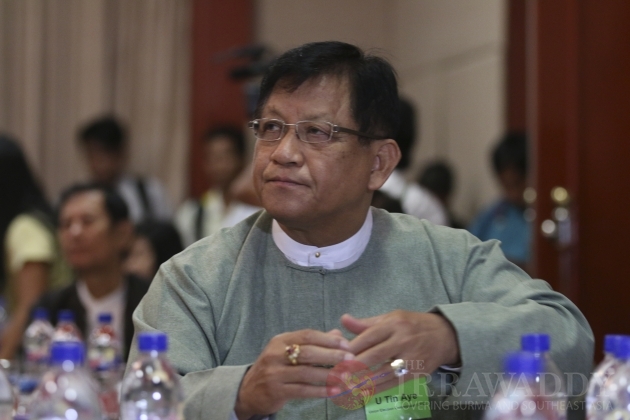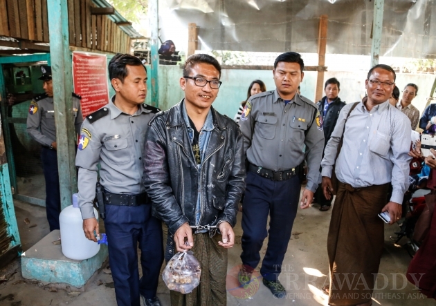 Min Ko Naing, a student activist leader, stands outside head office of the Myanmar's democracy leader Aung San Suu Kyi's National League for Democracy party in Yangon, Myanmar. A Myanmar official says authorities have begun transferring some political pri
