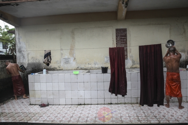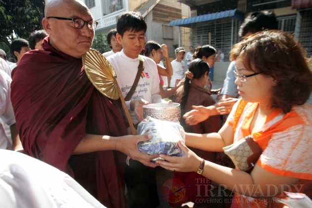 Shwe Nya War Sayadaw going around to accept the offering, 15 Feb 2012, Myanmar.