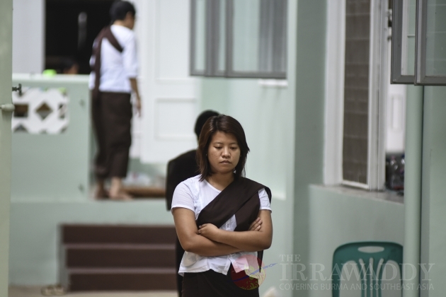 Young novice collecting alms at the coffee shop in Rangoon, Burma.