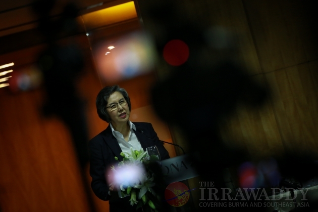 Aung San Suu Kyi attend 100th founding anniversary of St.Mary Cathedral and funeral of U Lwin on Thursday, December 8, 2011, in Yangon, Myanmar.