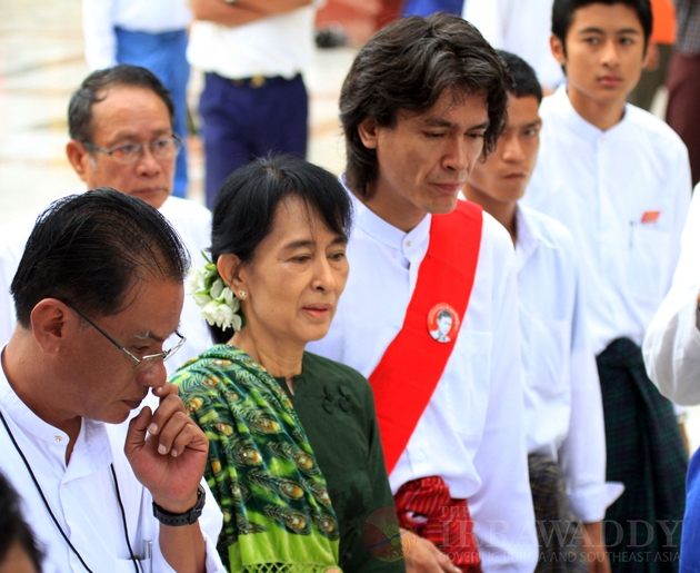 Myanmar Democracy leader Aung San Suu Kyi and her youngest son Kim Aris visit Shwedagon Pagoda on Tuesday, 12 July, 2011, Yangon Myanmar.