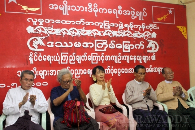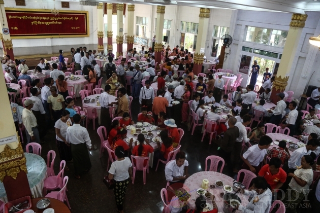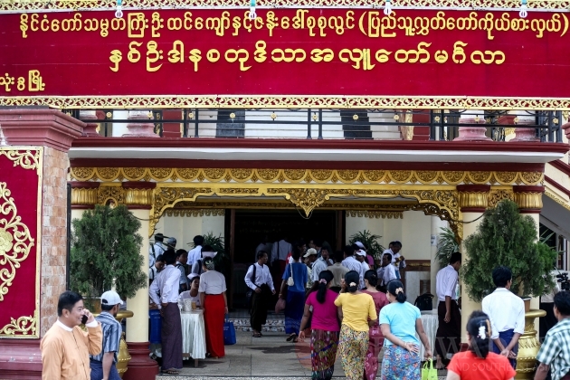 Ceremony to donate cash to families of political prisoners at NLD party HQ