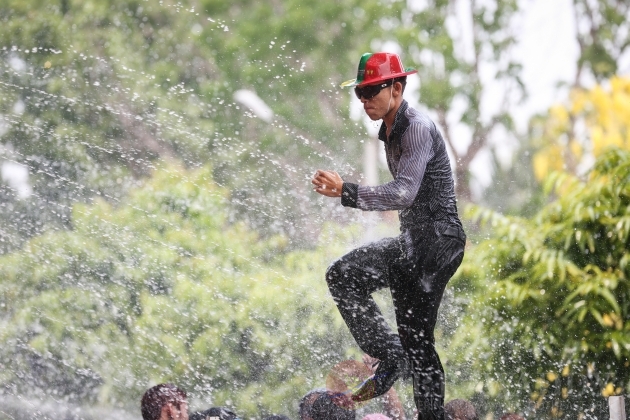 Myanmar Water Festival (Thingyan) on 13 April 2012, Yangon, Myanmar.